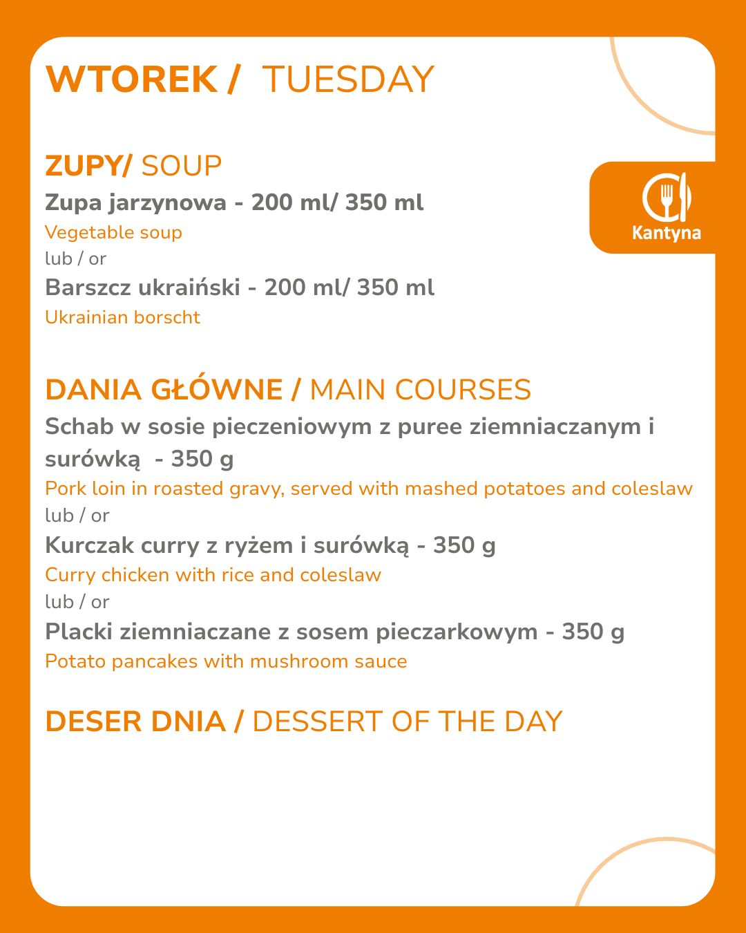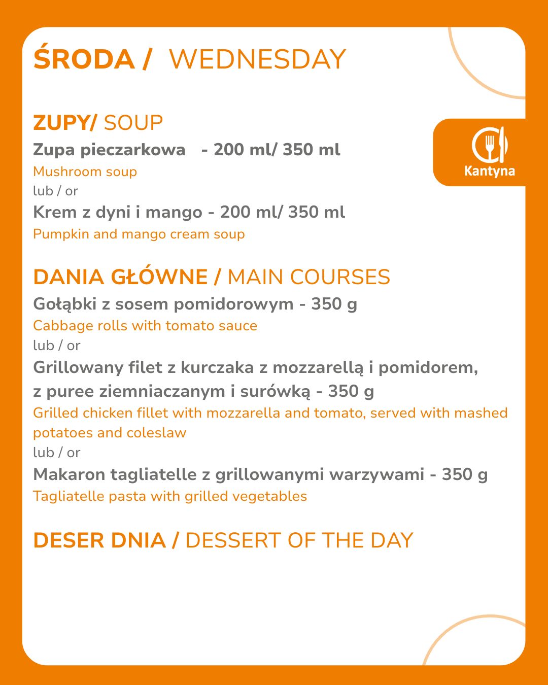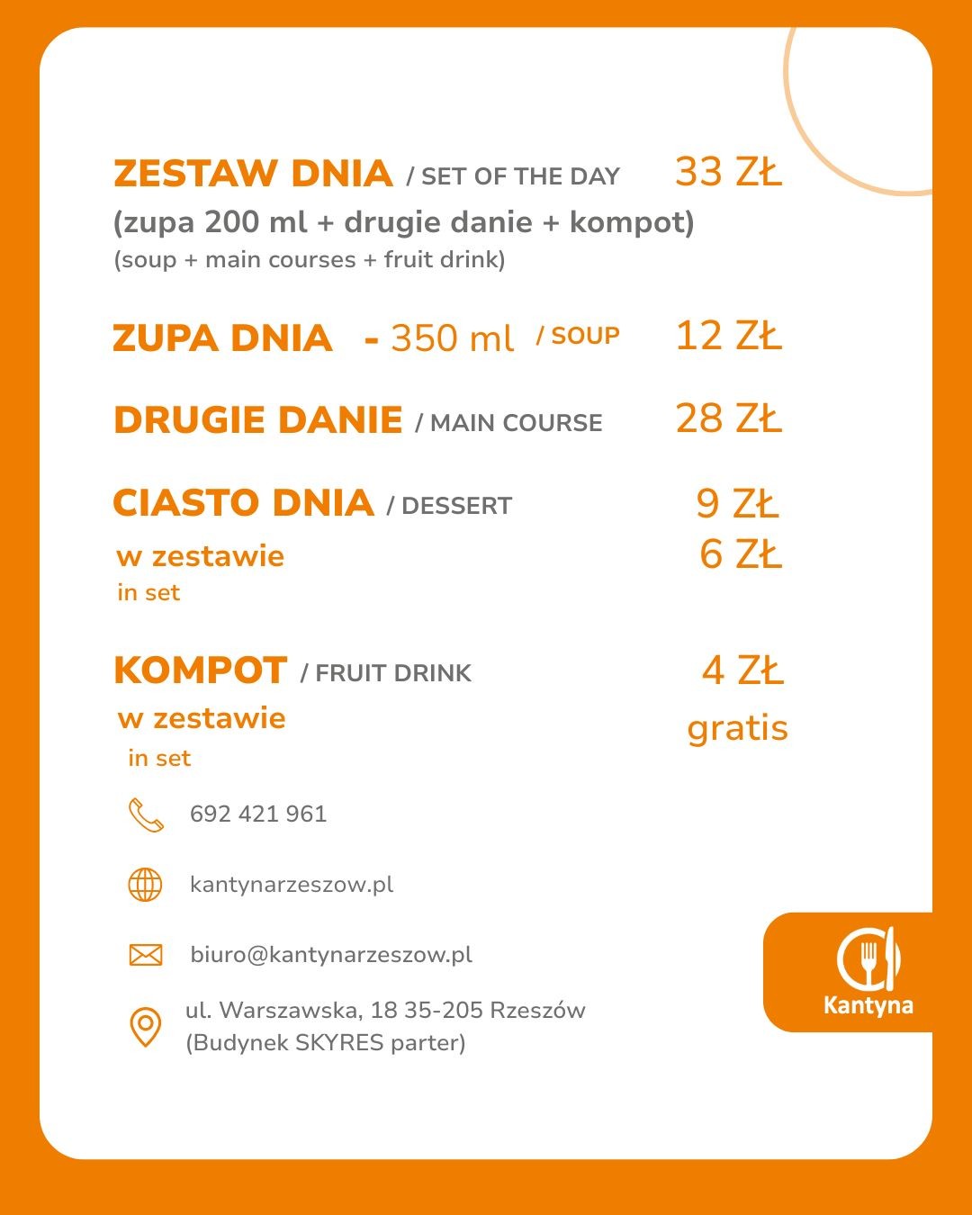 Godziny otwarcia Kantyny