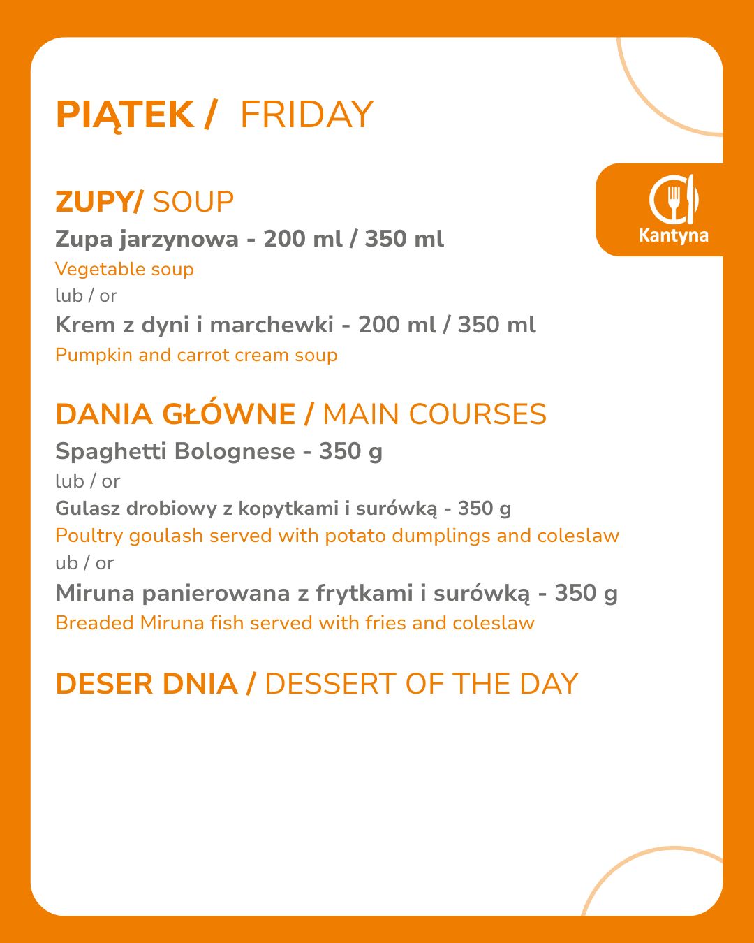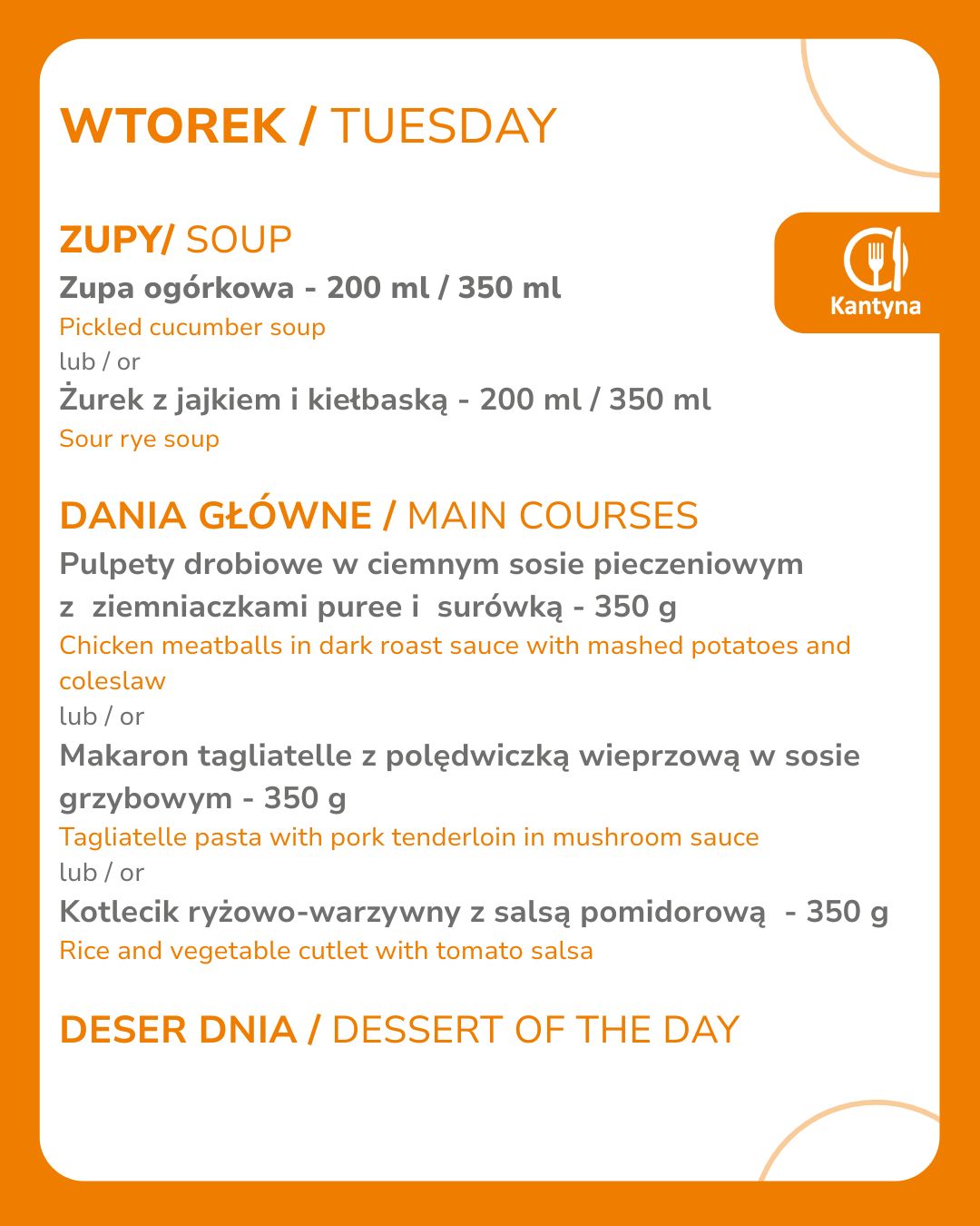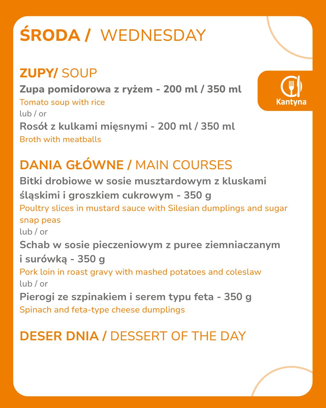 Godziny otwarcia Kantyny